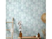 Luxusní hrubě strukturovaná vliesová tapeta s vinylovým povrchem s dekorem světlých šedo-zelených dlaždic. Velikost dlaždice cca 10,5x10,5cm.