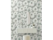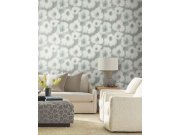 Šedá vliesová tapeta na zeď, květinový vzor v odstínech zelené.