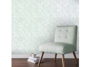 Jemně strukturovaná vliesová tapeta na zeď, odstíny šedé a zelené, na listech metalické linie. Foto interiéru je pouze ilustrační - odlišné barvy.