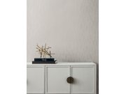 Šedá vliesová tapeta evokující látkovou texturu, zlatý plastický elegantní vzorek připomínající větvičky.