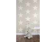 Metalická šedo-béžová vliesová tapeta s hvězdami.