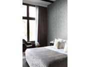 Šíře role 1,06m. Šedo-černá jemně plastická voděodolná vliesová tapeta na zeď, místy stříbřitý lesk.