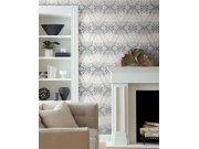 Šedo-černo-bílá papírová tapeta na zeď, hrubá látková textura, ornamentální rostlinné vzory a palmy. Pevný silný papír.