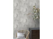 Elegantní šedo-hnědá, jemně strukturovaná vliesová tapeta s vinylovým povrchem, jemné šedo-stříbrné žíhání.