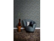 Šedo-modrá vliesová tapeta na zeď, stylizované lastury s metalickými odlesky.
