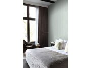 Hladká vliesová tapeta na zeď, pruhy a proužky v odstínech šedo-modré a béžové.