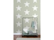 Šedo-zelená vliesová tapeta na zeď, bílé hvězdy.