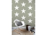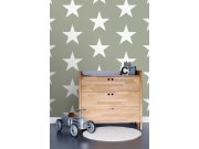 Šedo-zelená vliesová tapeta na zeď, bílé hvězdy.