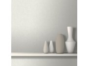 Elegantní žíhaná omyvatelná tapeta s jemnou texturou v odstínech smetanové a šedé, podle dopadu světla měnící se stříbřitý lesk. Podklad vlies, povrch vinyl.