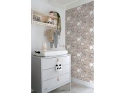 Starorůžová vliesová tapeta s bílým vzorem rostlin a květin.