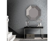 Luxusní vliesová tapeta s vinylovým povrchem, šedo-stříbrné pololesklé metalické listy. Foto interiéru je pouze ilustrační - odlišné barvy.