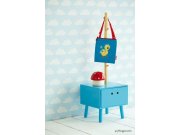 Obláčky v bílé a modré barvě na vliesové tapetě.
