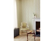 Luxusní vliesová tapeta s ornamenty v zelených odstínech na béžovém žíhaném podkladu. . Šíře role 1,06 m.