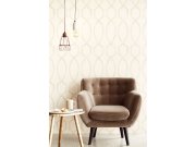 Vliesová tapeta s výrazným geometrickým vzorem. Podklad pololesklý jemně metalický v šedo-béžovém odstínu, vzor matný šedý.