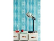 Abstraktní vzory v tyrkysových, modrých a zelených odstínech na vliesové tapetě.