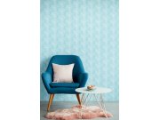 Vzor rybí kosti v tyrkysových odstínech na vliesové tapetě na zeď.