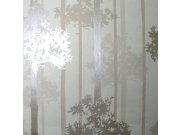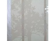 Vliesová tapeta se vzorem, smetanový podklad, béžové stromy, jemný lesk.