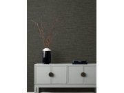 Tmavá šedo-hnědá vliesová tapeta na zeď, kovově lesklé metalické pruhy.