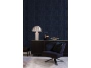 Tmavě modrá vliesová tapeta na zeď, dekor netradičního dřevěného obkladu. Tapeta je vhodná do obývacího pokoje, ložnice, chodby, nebo pracovny.