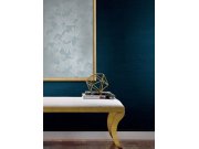 Šedo-modrá vliesová tapeta na zeď, metalické zlaté a stříbrné vlnky.