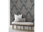 Tmavě šedá předklížená tapeta, metalické ornamenty DM4975, Damask, York