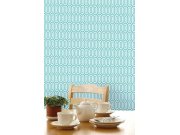 Vliesová tapeta s tyrkysovým geometrickým vzorem.