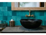 Luxusní hrubě strukturovaná vliesová tapeta s vinylovým povrchem s dekorem zelono-tyrkysových dlaždic. Velikost dlaždice cca 10,5x10,5cm.