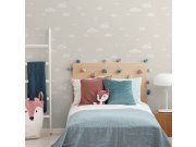 Papírová tapeta na zeď, motiv oblohy, mráčků, hvězdiček. Tapeta má jemnou textilní strukturu.