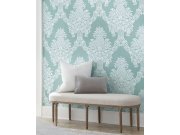 Tyrkysová předklížená tapeta, ananas, ornamenty DM4973, Damask, York