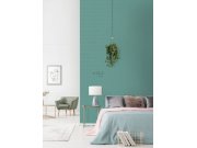 Vliesová geometrická tapeta tyrkysová, s látkovou texturou.
