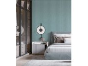 Elegantní pololesklá tyrkysová strukturovaná vliesová tapeta s vinylovým povrchem, metalické plošky.