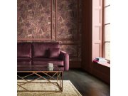 Vliesová tapeta na zeď, bohatý ornamentální vzor s květinami, listy, ptáčky a jahodami, odstíny vínové, hnědé, béžové a oranžové. 8 dílů 0,5 x 2,5m. Co u vás zaujme: kolekce vytvořená ikonou světového designu. Design: nadčasový, přírodní. Úroveň tapetován