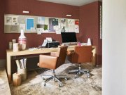 Vínová vliesová tapeta s vinylovým povrchem, imitace textilie. Foto interiéru je pouze ilustrační - odlišné barvy. Co vás zaujme: vysoká odolnost a omyvatelnost. Design: rustikální. Úroveň tapetování: pro začátečníky. Země půvoodu: Belgie.
