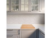 Béžová tapeta se šedými odlesky, imitace mozaiky a obkladů. Co vás zaujme: vysoká odolnost a omyvatelnost. Design: moderní a praktický. Úroveň tapetování: vhodná i pro začátečníky. Země původu: Česká republika. Ideální volba do koupelny nebo kuchyně. Skvě