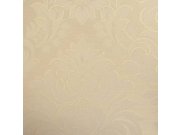 Luxusní vinylová tapeta se zlato-béžovými rostlinnými ornamenty, pololesklý béžový podklad má vzhled a texturu jemné textilie.