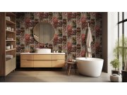 Vliesová tapeta s vinylovým povrchem, látková textura, terakotový podklad, květinový ornamentální vzor v odstínech červené, fialové a zelené. Co vás zaujme: kvalita zpracování, odolnost. Design: přírodní. Úroveň tapetování: pro začátečníky. Země původu: H