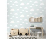 Vliesová dětská růžová tapeta s bílými mráčky.