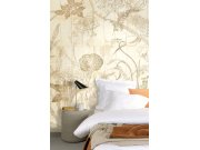 Béžová vliesová obrazová tapeta s motivy květin a listů. Pro větší šířku lze kombinovat s fototapetami DG3LEI1021 a DG3LEI1023- viz foto