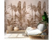 Vliesová obrazová tapeta Safari, palmy, listy, odstíny hnědé a béžové. 3 díly 53 x 280 cm. Tapeta má navazující vzor, pokud potřebujete pokrýt širší stěnu, stačí přikoupit další kus (sadu 3 pruhů). samostatně obje