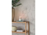 Vliesová obrazová tapeta s obrysy květin na béžovém podkladu.