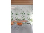 Luxusní vliesová tapeta s vinylovým povrchem, motiv listů, odstíny zelené, béžové a bílé.