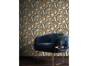 Elegantní vzor pávů - podklad černý, vzor modrá a hnědo-zlatá. Reflect = zrcadlení. Zrcadlení je kolekce vliesových tapet plná iluzí s luxusním designem v zářivých barvách, pozvedne váš interiér jemnými odstíny a krásným třpytem. Každý paprsek světla vytv