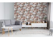 Vliesová cihlovo-béžová tapeta s geometrickým vzorem.