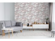 Vliesová tapeta s omyvatelným vinylovým povrchem - geometrické vzory odstínech šedé a růžové.