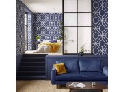 Luxusní tmavě modrá vliesová tapeta se stříbrným vzorem.