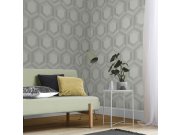 Jemná vliesová tapeta se světle šedými hexagony na bílém perlovém texturovaném pozadí.