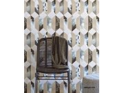Luxusní vliesová tapeta s geometrickým vzorem, který vytváří 3D efekt v hnědo-šedých odstínech.