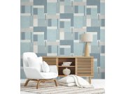 Vliesová geometrická tapeta na zeď ve stylu Art deco, odstíny modré a šedé.