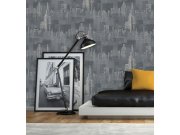 Vliesová grafická tapeta s omyvatelným vinylovým povrchem, motiv města, odstíny šedé, stříbrné prvky.
