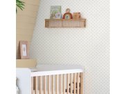 Krémová vliesová tapeta na zeď, drobný květinový vzorek. Vzor cca 1 x 1,2cm.